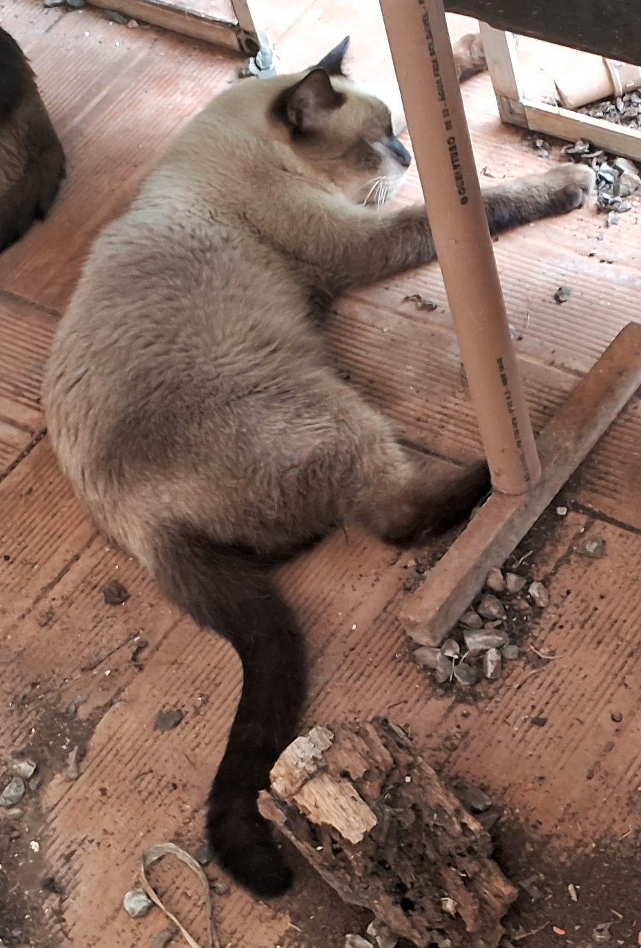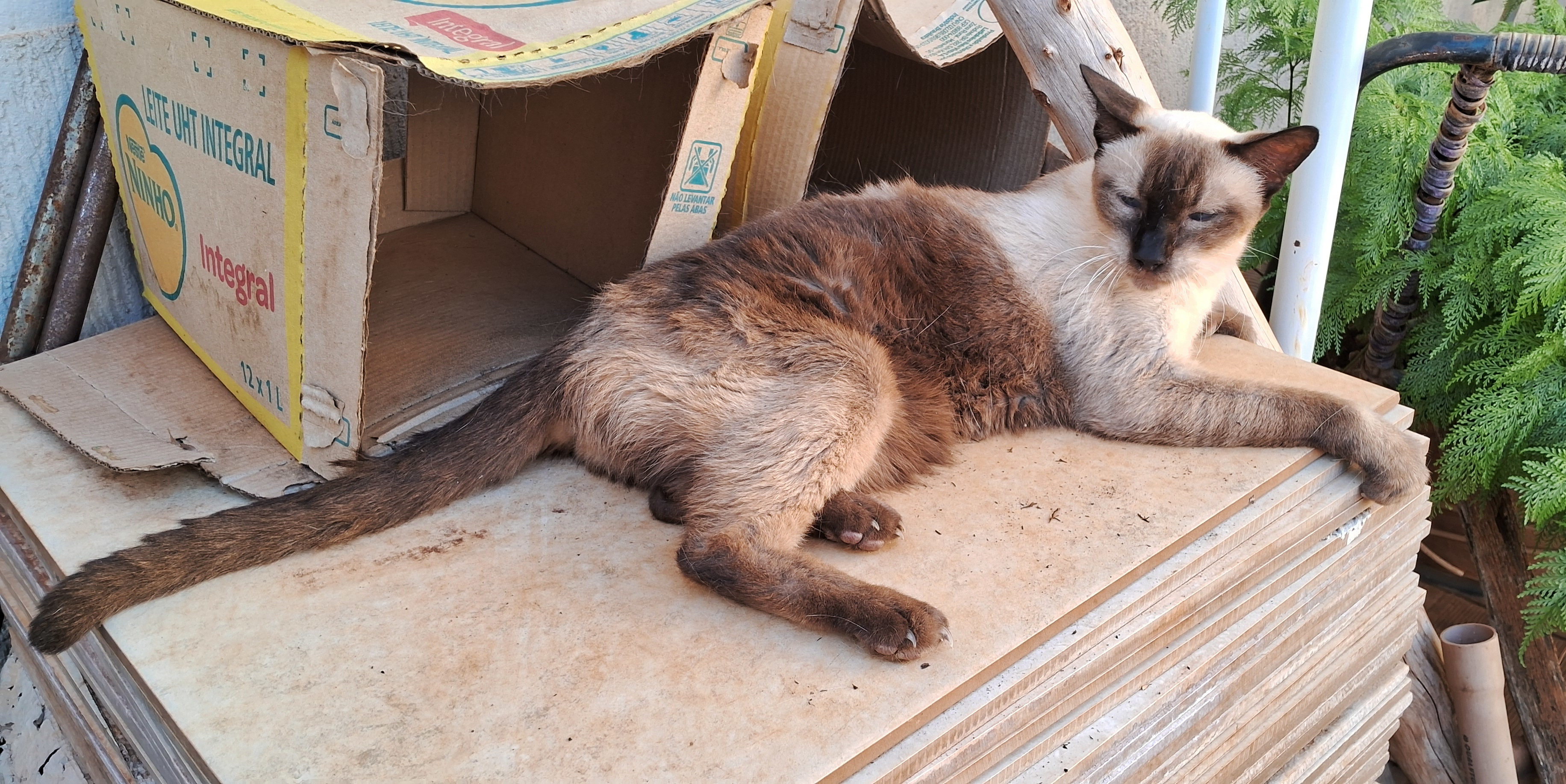 The wildest one. Before the accident, he lived outside the house, being called William by my mother, after Prince William due to his similarity with another siamese wild named Kate after Prince William's wife, Queen Catherine. He is very confusable with Preta, both being siamese. His distinguishing features are that he has a rounder face and his fur is of a lighter color.
