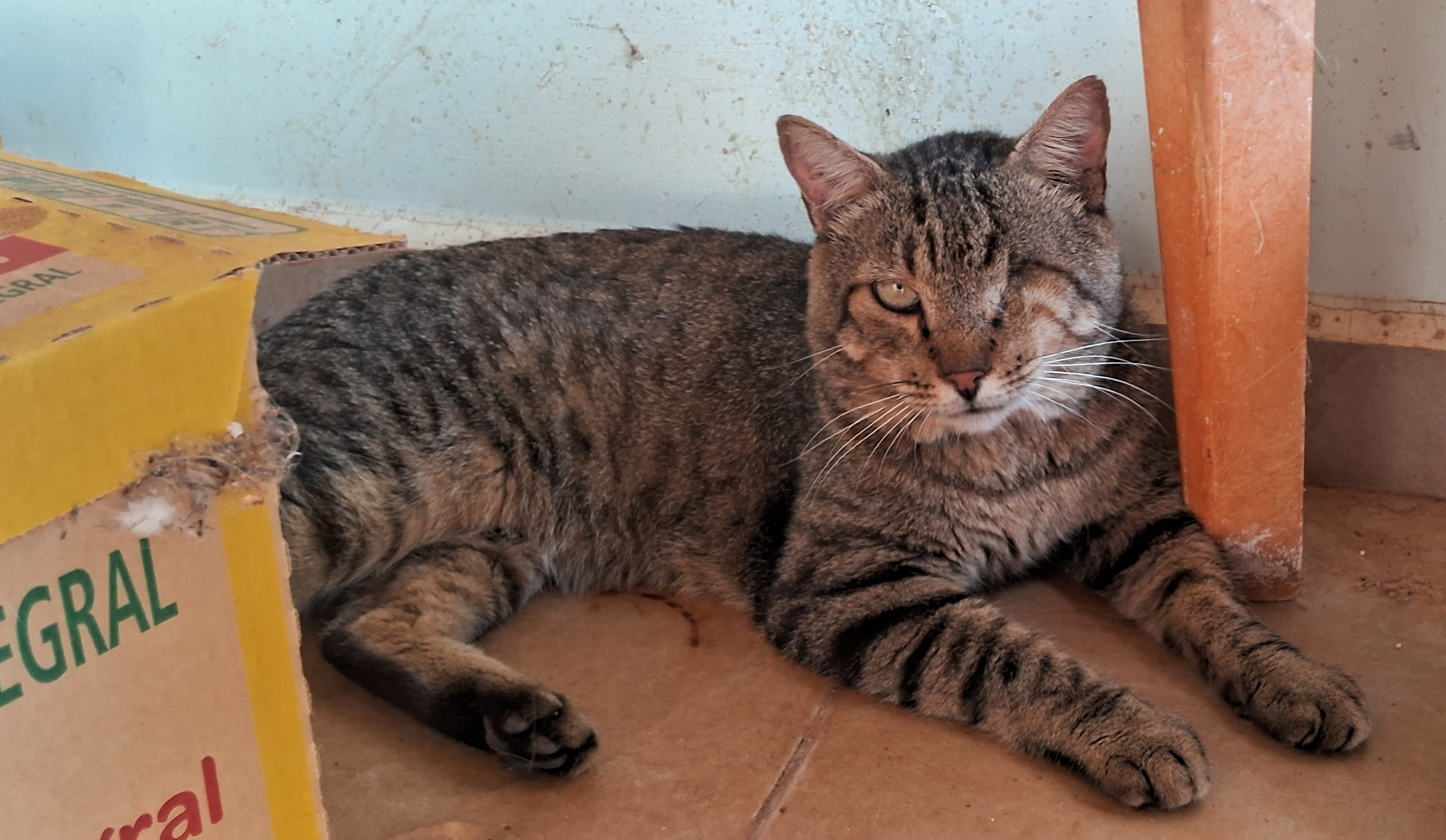 Along with Térbio, she is one of the two cats that never leave the backyard. Occasionally though, she leaves and becomes stuck on the roof when we accidentally leave a ladder leading to the house roof. She is also the only one permitted to go inside the house, although Térbio also sometimes wanders inside when the door is left open. She really likes sleeping under the oven.