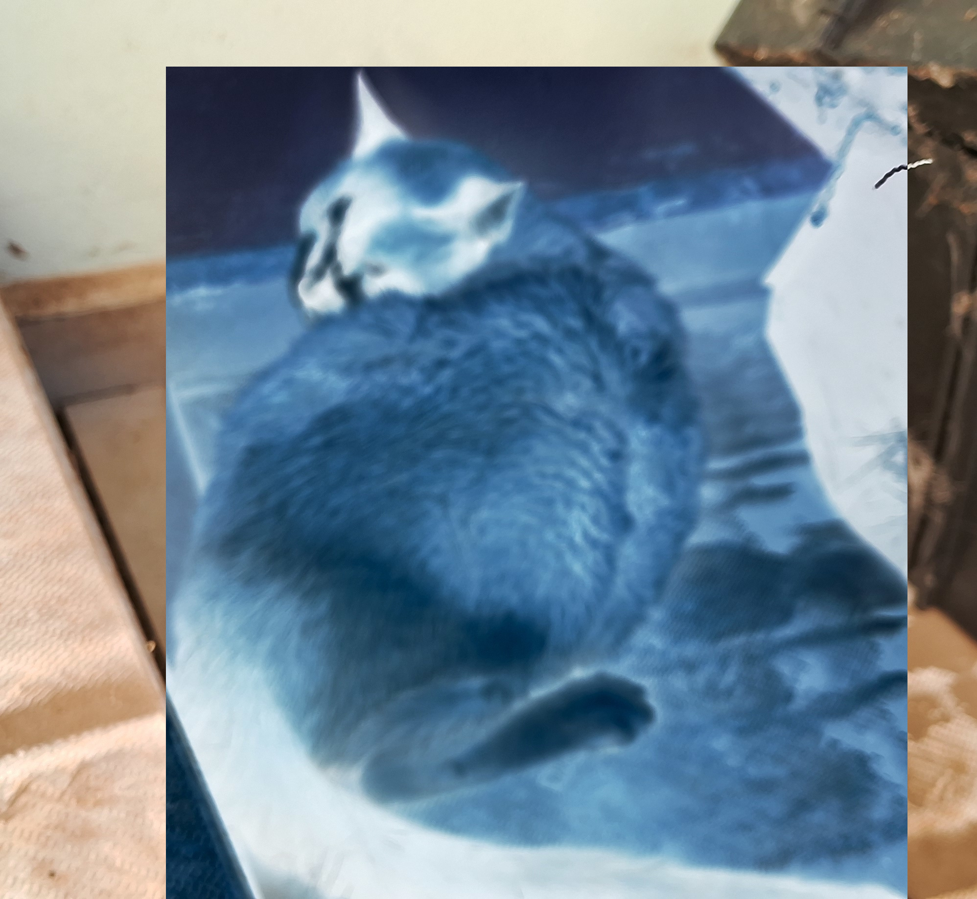He lost his left hind leg in an accident. It's unknown what it was; he could've been ran over, his leg could've gotten stuck in a sliding gate etc. All I know is that one day in late 2021 my mother found him with his leg missing all its flesh, after him having been missing for a while. Obviously, it had to be amputated and he had to stay at our house. During 2022, he stayed isolated from all the others to let him recover from the surgery. After that though, he was released into the backyard. His very first interaction with another cat besides Preta after being released was violently attacking Thor right at the backyard door.