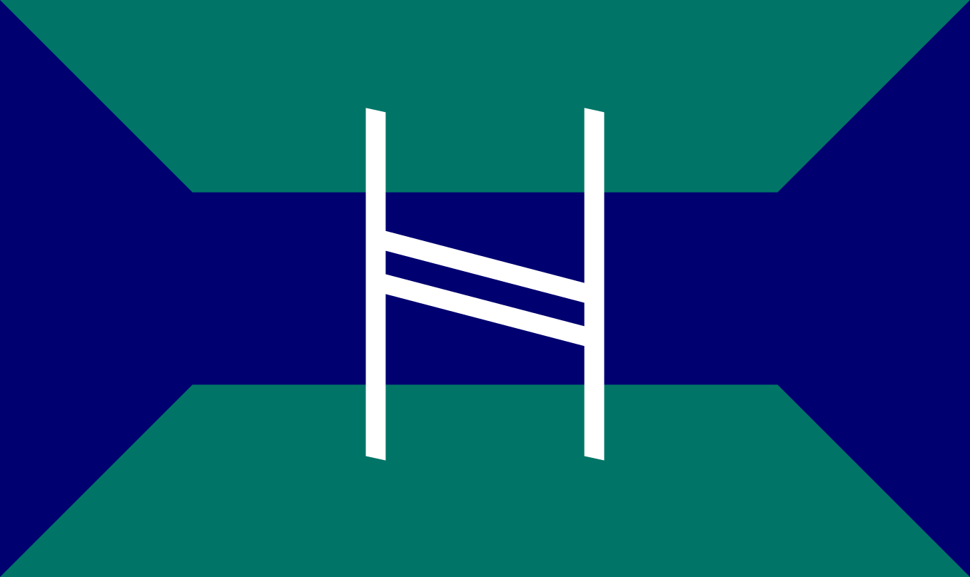 Flag for my country on a Minecraft civilizations server by Derv ("Derver") that ran from mid December 2022 to mid January 2023. I don't like the newer version too much. The green stands for the taiga and the blue stands for the river the capital was built upon. The central H is the runic form of the letter H, which tied in with the Anglish themes of the country.