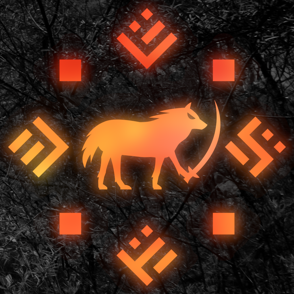 It is meant to resemble the canonical profile picture of Lisri Nati (in fact, the symbols spell out his old name in his language), a demigod in a conworld of mine. He uses it in the social media of his world, whose citizens are unaware of his powers as he prefers to maintain normalcy. To them, he simply a professor of geometry at a highly prestigious university. The "cosmic family" he is part of, the Itlasy, which are also demigods, are aware of his powers though. The difference from "the real one" is that his would not have a wolf, a Terrestrial animal, in the center and the background would similarly be an alien bush-like plant. Some of The Keltan Lore really is full with random overthought details like that.