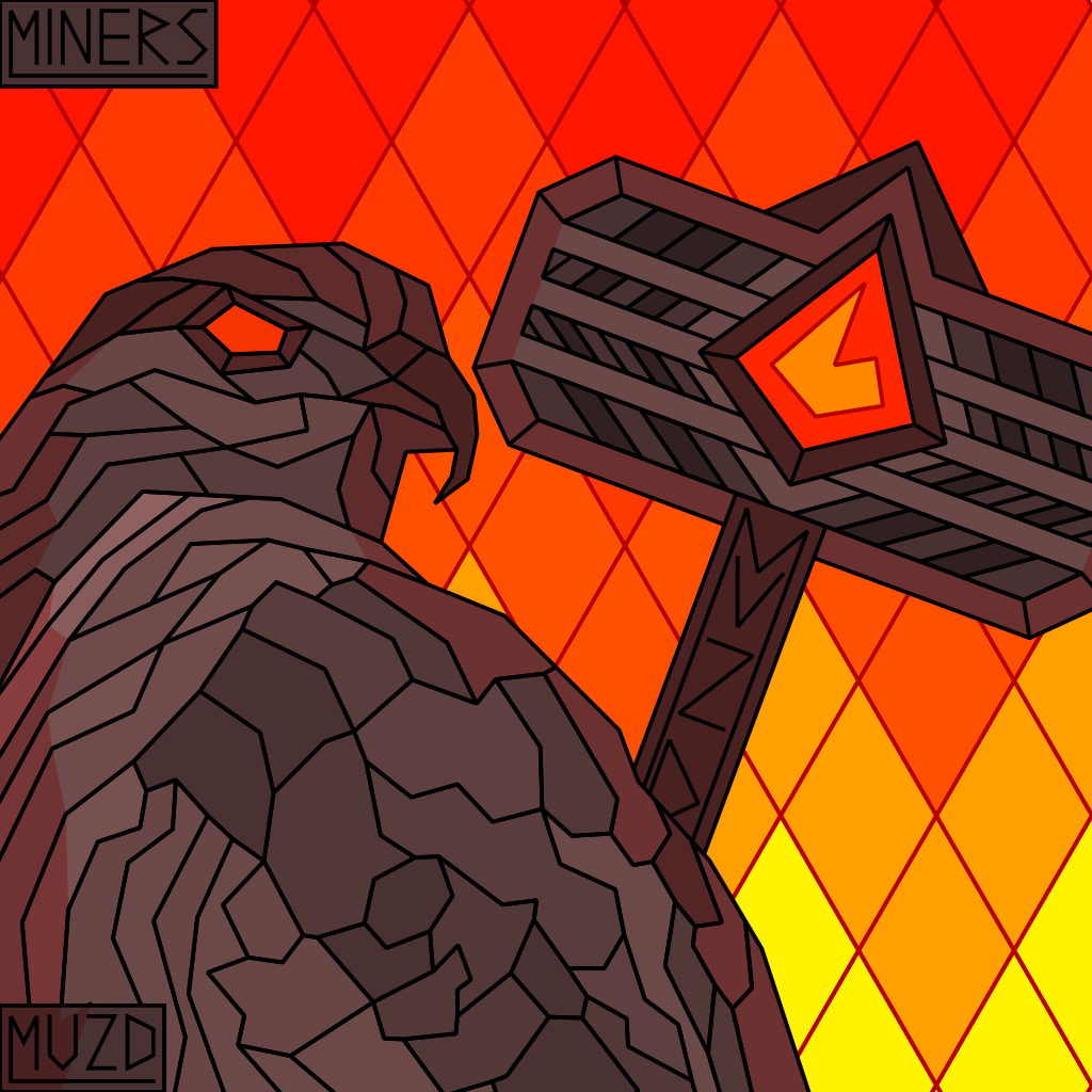 This is a representation of MUZD of the Everkiln, one of the Eight Princes of Corbenic in SCP author daveyoufool's Corbenic mythos. This comes from a description of His appearance in a mural in SCP-7941 as "a hawk surrounded by fire, holding a giant black hammer". It was originally supposed to be a Halloween special profile picture, but it ended up sticking around for over half a year. This was my Discord profile picture from 6 October 2024 to 30 June 2025.