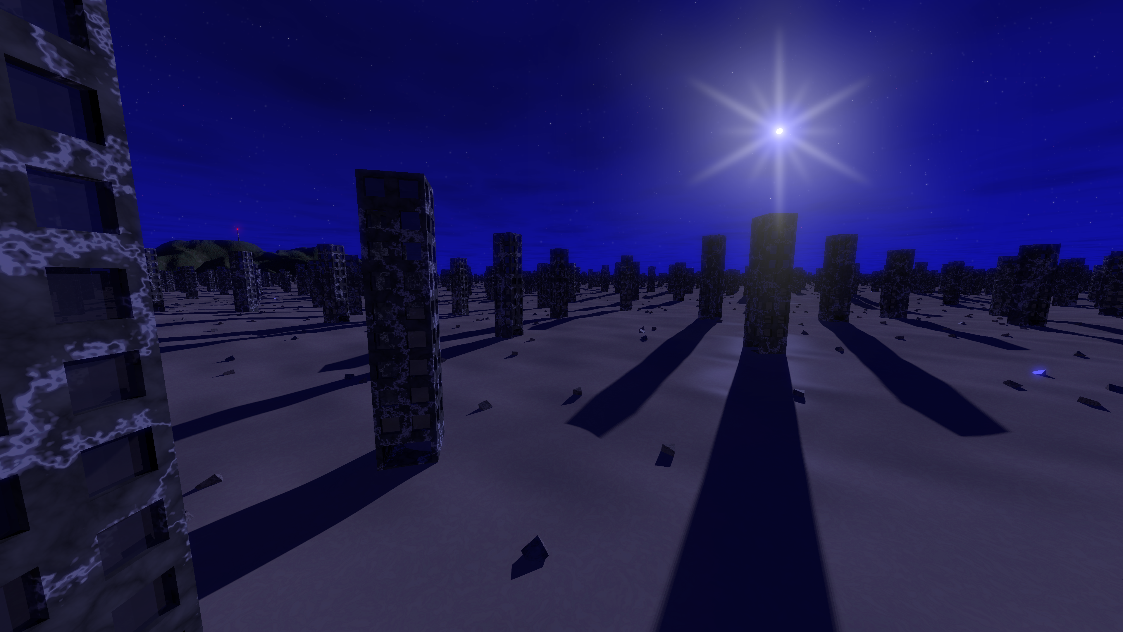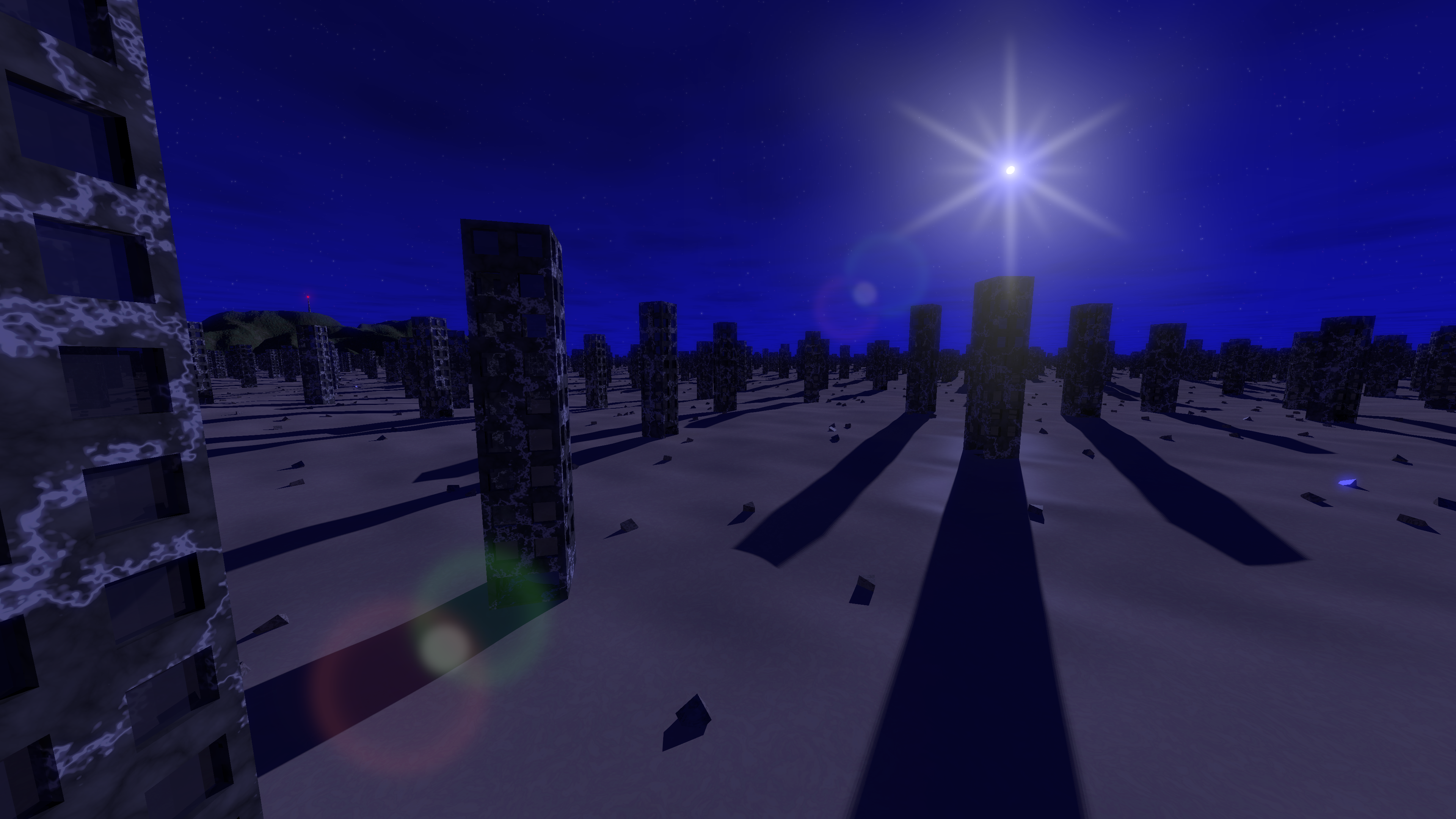 Note that a lot of details of my original vision, particularly the buildings being actual buildings instead of weird uniform window boxes, had to be scrapped out because unlike Tryvach I am not a divinely talented artist. To account for this, I added some details not present in this vision such as clouds, daytime stars and rocks in the ground.